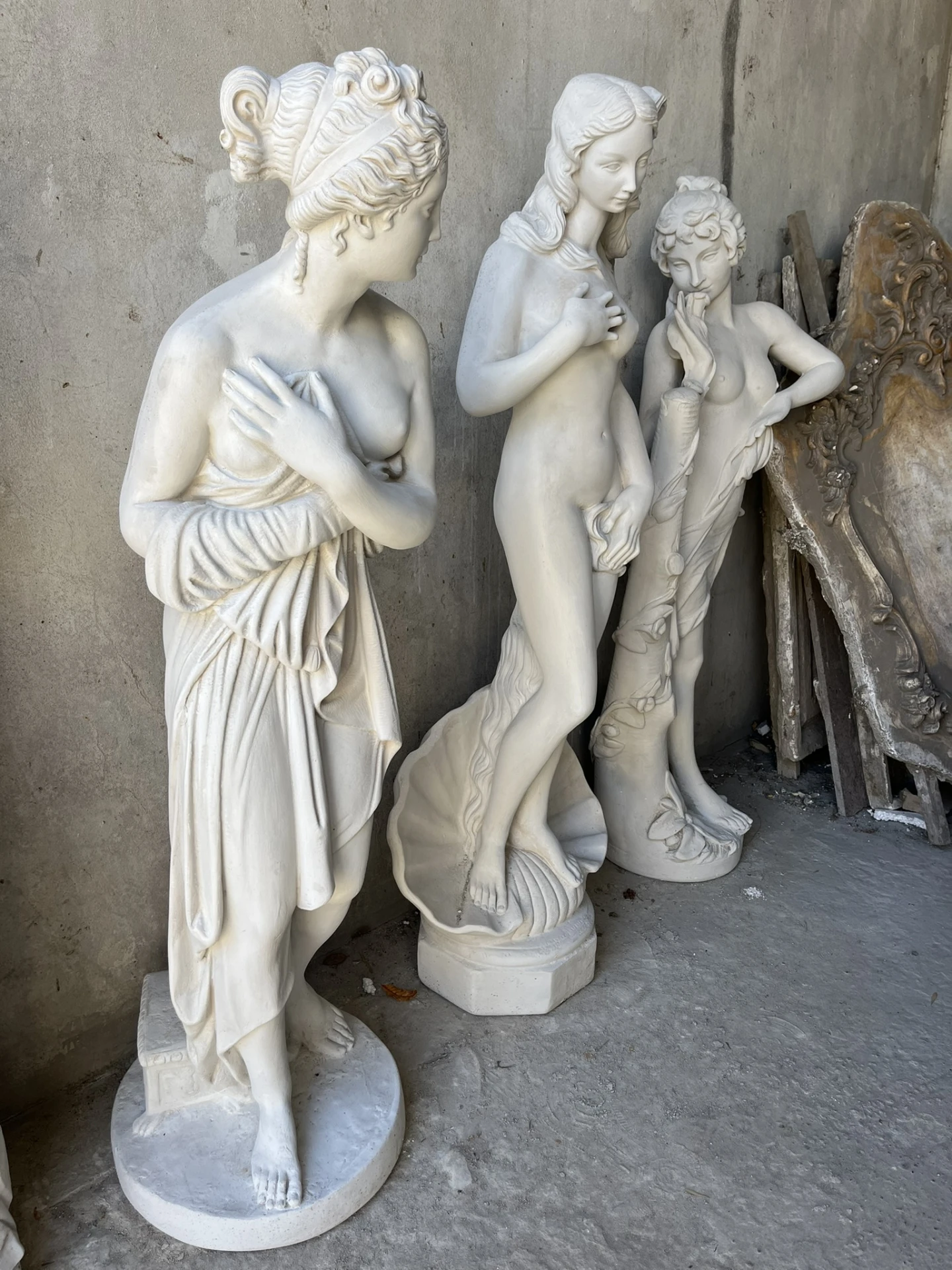 Escultura realizada en mármol reconstituido (marmolina) o en yeso, impermeabilizada, con estructura interna de hierro y de excelente terminación (en color gris/blanco). Opción: terminación en símil piedra Paris (con un 25% de recargo). Ideal para decoraciones.